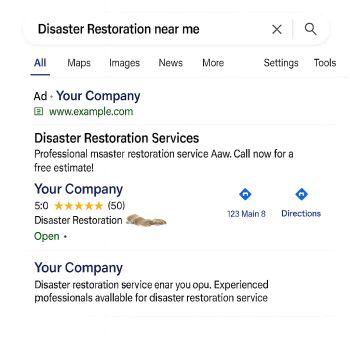 Appear at the top of search results with Local Service Ads—ideal for disaster restoration contractors with strong customer reviews. Use our LSA tool to check availability in your area.